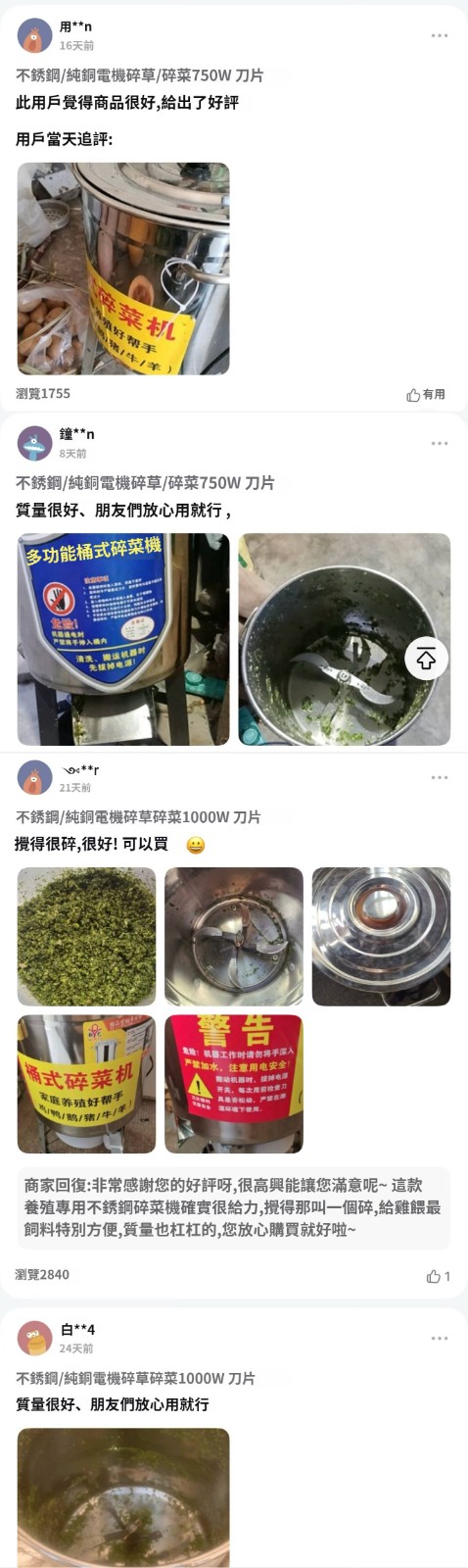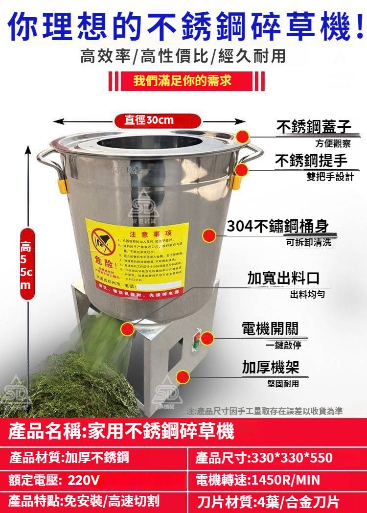5分鐘前【養殖好幫手】多功能碎菜機,碎菜只需1秒!!!廠家直銷,貨到付款!量大優惠! - 600W不鏽鋼台式碎菜機--NT$2990