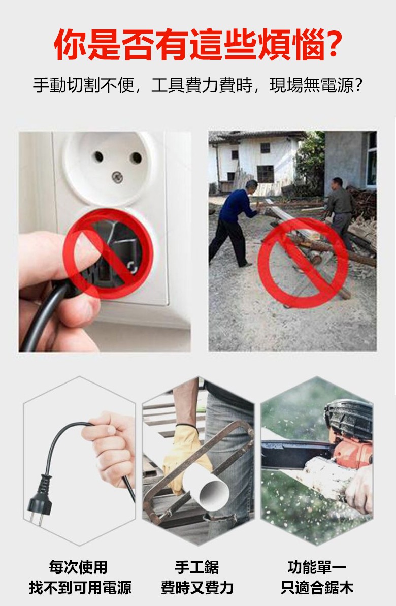 15分鐘前【德國精工鋰電鋸】鋼、鐵、磚頭、木材,統統都能鋸!續航久、充電快,方便攜帶,一機多用 - 26V德國精工往複鋸(機頭+1充1電)贈工具箱+5鋸條NT$1790