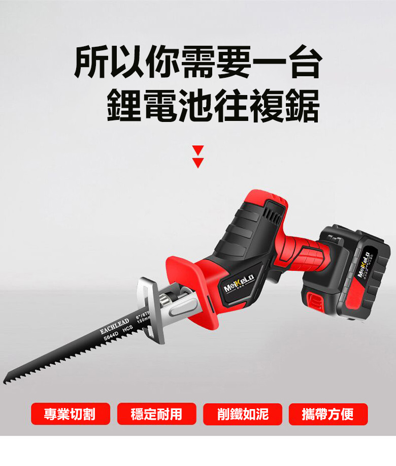 4分鐘前【德國精工鋰電鋸】鋼、鐵、磚頭、木材,統統都能鋸!續航久、充電快,方便攜帶,一機多用 - 26V德國精工往複鋸(機頭+1充1電)贈工具箱+5鋸條NT$1790