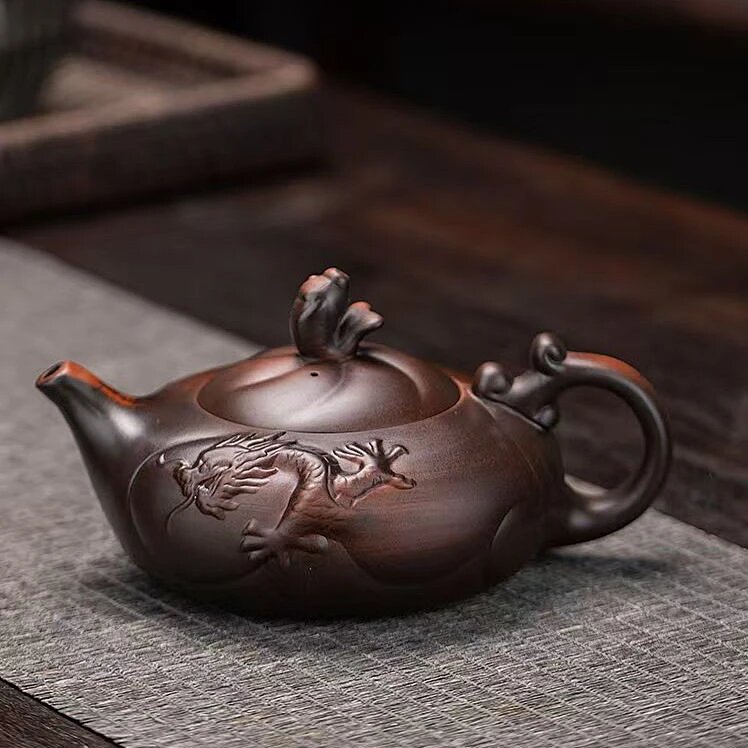 半小時前正宗原礦紫陶浮雕富甲天下荷韻 • 荷花壺┃350cc大容量紫砂鳳鳴壺 純手工大師范明偉匠心之作,泡茶更醇香! - 紫陶魚化龍鳳鳴壺