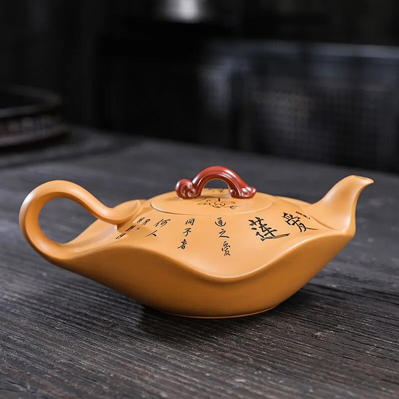 ✩ 絕版收藏!正宗宜興紫砂朱泥長嘴供春壺 ❘ 黃金大容量500cc ❘ 純手工浮雕匠製,泡茶更香