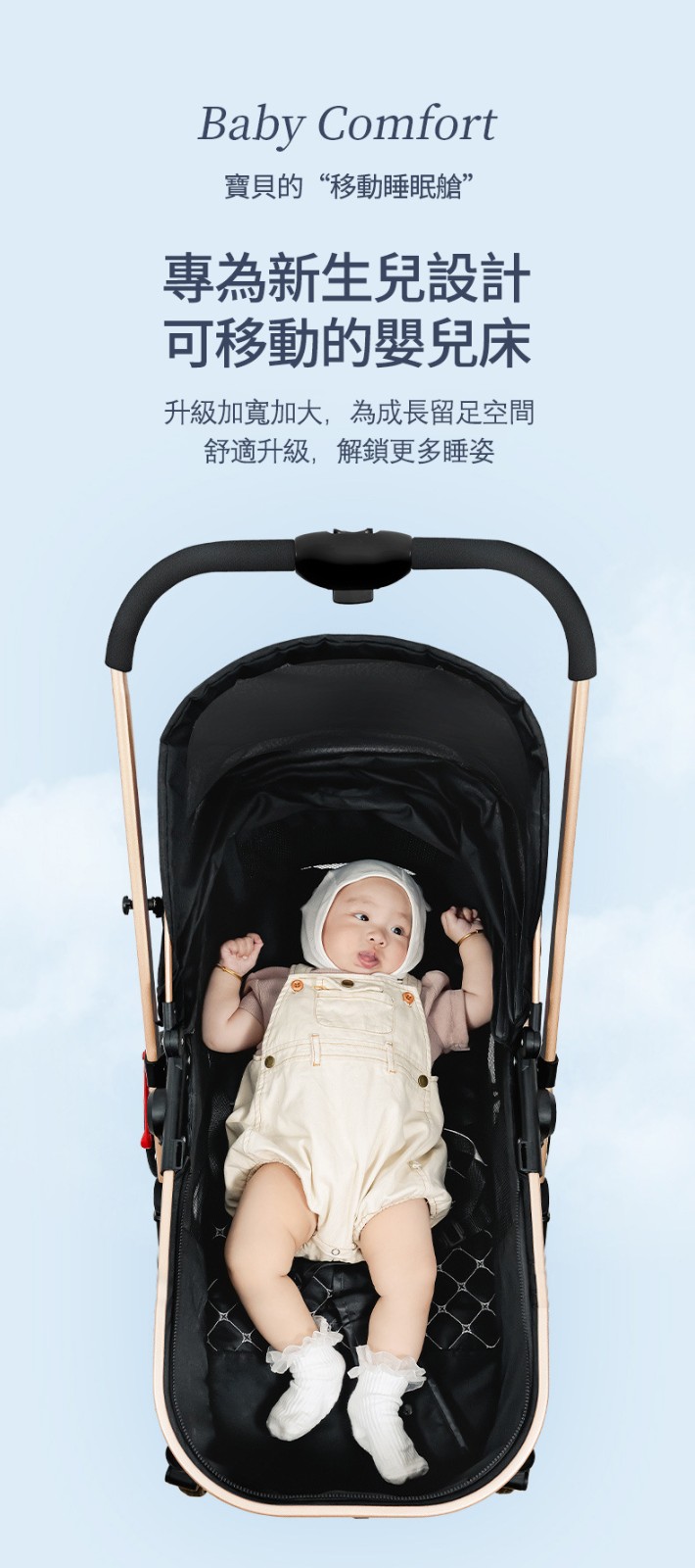 加大空間+可平躺,寶寶睡到嘴開開~