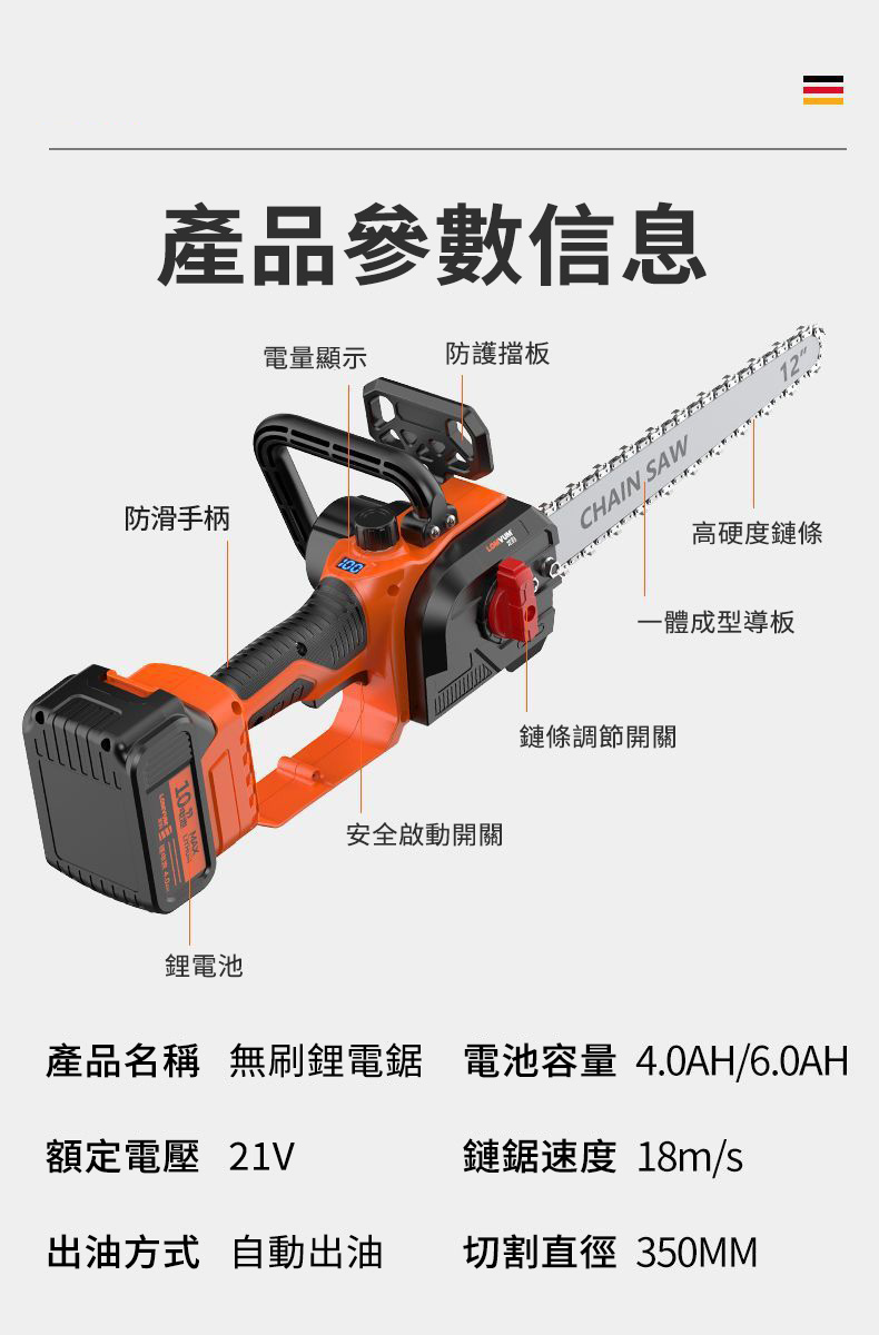 7分鐘前千元直降【東林官方 回饋國人】國民品牌 全新東林12吋鋰電伐木鋸 下訂僅需1980元!最後88組(保固一年 損壞包退換) - 12吋鋰電鋸(10節鋰電池)兩電一充