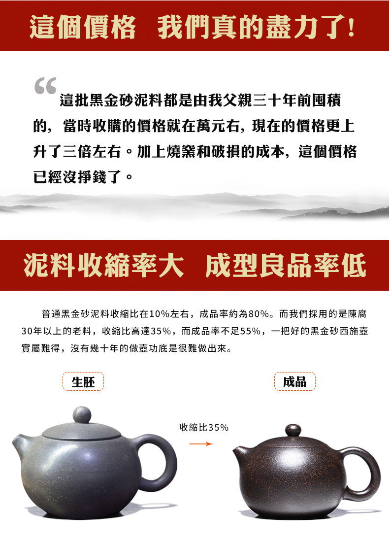 4分鐘前全手工紫砂壺 家藏三十年黑金沙原礦老料 大容量球孔西施壺 - 200CC黃金容量NTS1550
