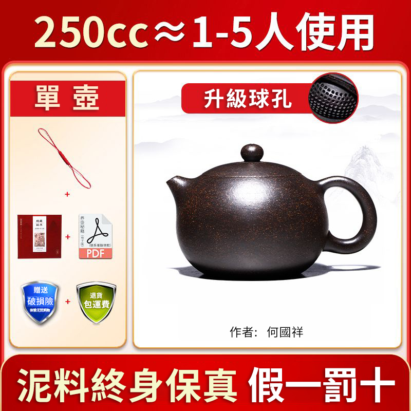 4分鐘前全手工紫砂壺 家藏三十年黑金沙原礦老料 大容量球孔西施壺 - 250CC中品容量NTS1650