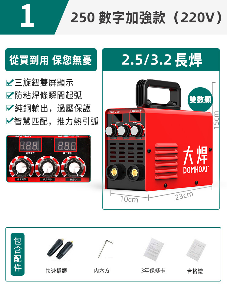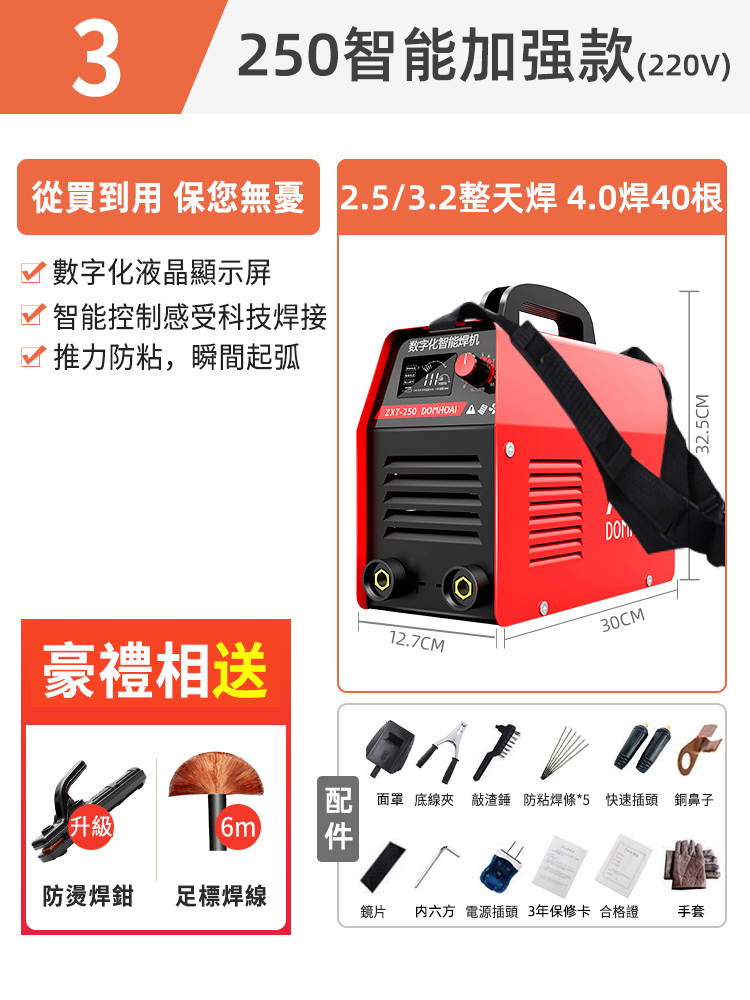 4分鐘前業內焊機領軍品牌【德國DOMHOAI】全新二代數字化電焊機,瞬間起弧,長焊4.0焊條 - 【250-220V】數字加強款+基礎套餐