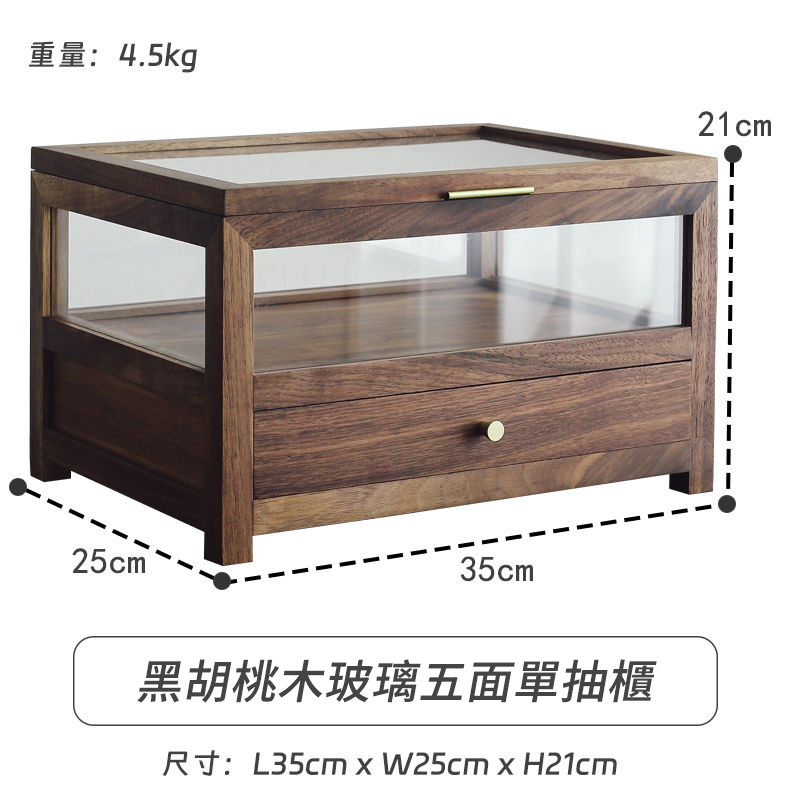 2分鐘前「純手工匠製」胡桃木製作桌面博古架 ,節省空間 大氣典雅的茶具置物架 - 黑胡桃木-五面玻璃盒