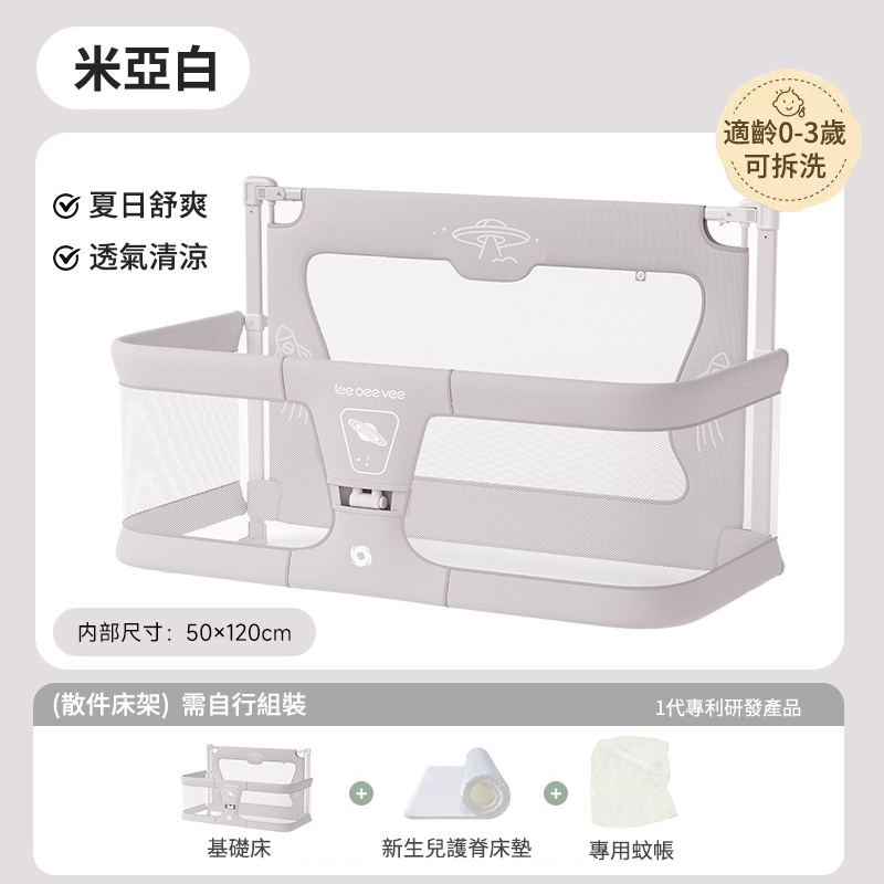 25分鐘前Leeoeevee嬰兒床寶寶床 新生兒多功能小床 便攜式移動床中床 防護欄 - 【夏日特惠】床+專用蚊帳【適齡0-3歲】可拆洗