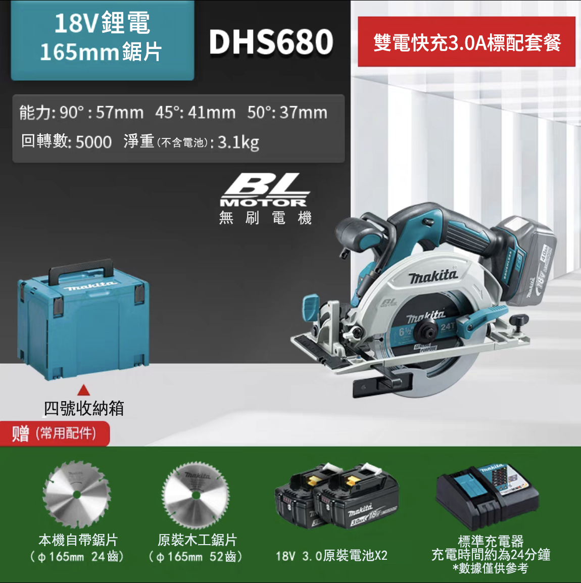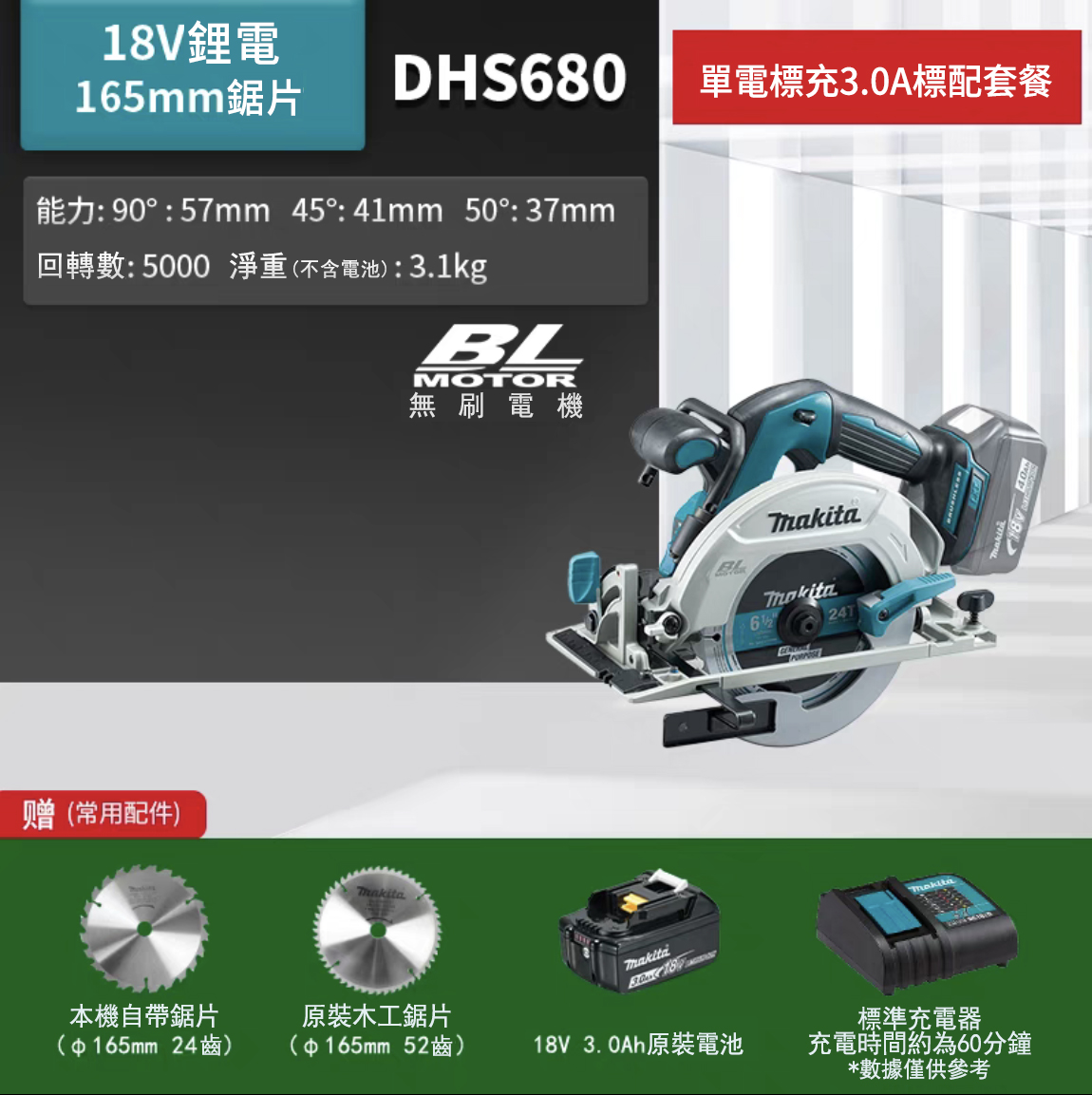 12分鐘前「牧田/Makita」DHS680 18V 4寸、7寸 多功能鋰電園鋸 大容量鋰電池 馬力強勁切割不卡殼 - DHS680【7寸】雙電3.0Ah電池+兩鋸片