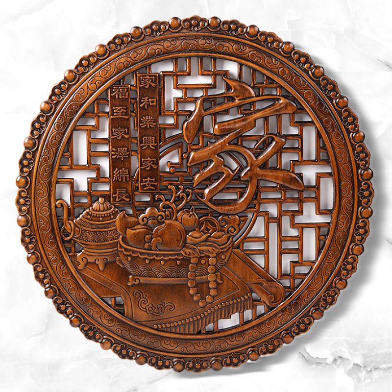 11分鐘前年到!福到! [東陽木雕] 傳承千年木上巧思——天然香樟木雕刻掛件 久放升值 家中旺!蛇年順! - 經典款-圓形28cm---NT$1480
