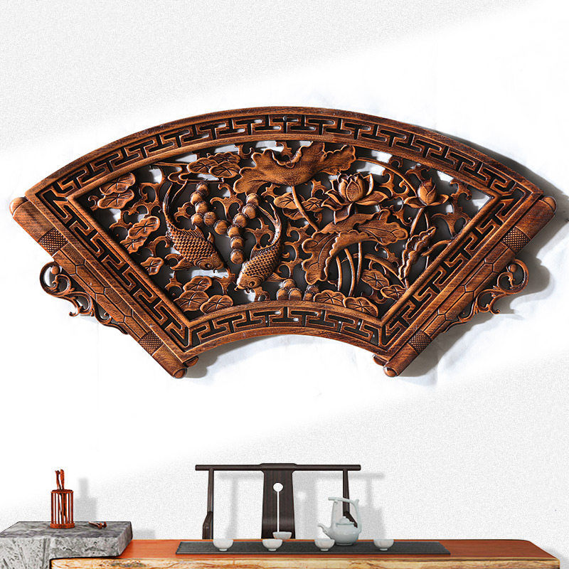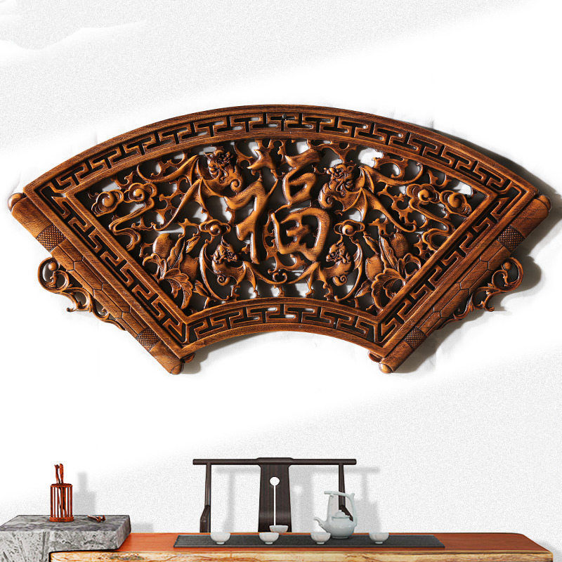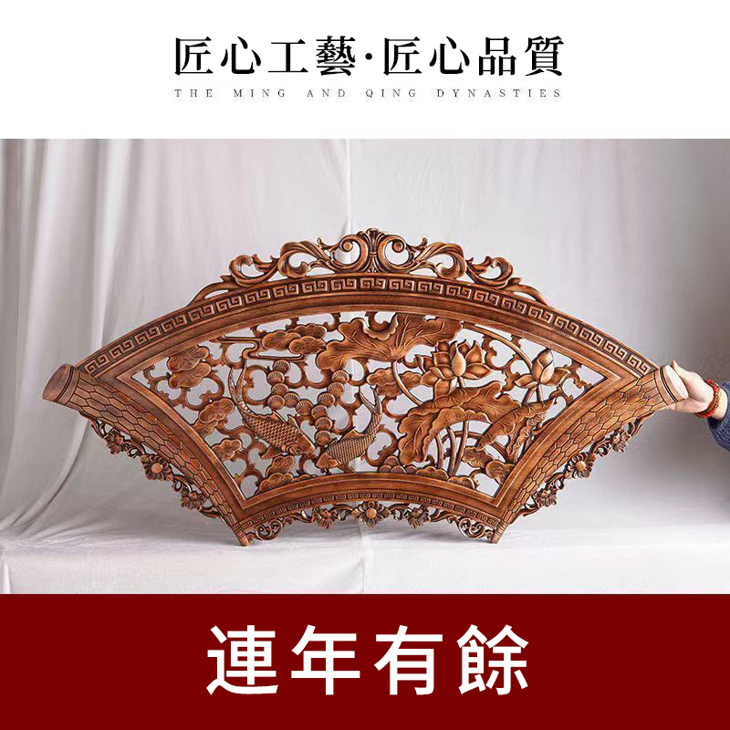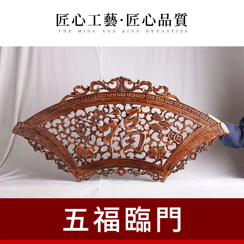 5分鐘前年到!福到! [東陽木雕] 傳承千年木上巧思——天然香樟木雕刻掛件 久放升值 家中旺!蛇年順! - 典藏款-扇形80*40cm---NT$2480