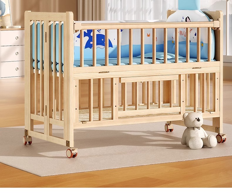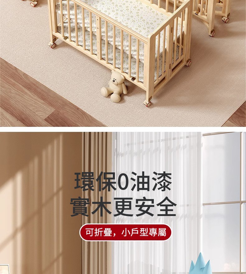7分鐘前陪伴寶寶成長,永不閒置【嬰兒床-->遊戲床-->書桌】日本超火の可折疊嬰兒床,實木無漆更安心,可拼接大床+滑輪移動,多功能設計陪寶寶成長! - 【118*68*85cm】折疊大床+五件套+蚊帳