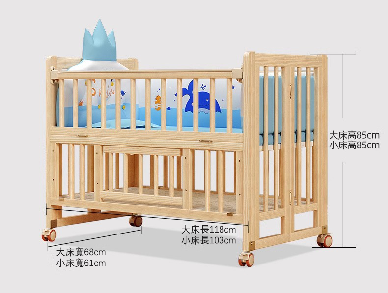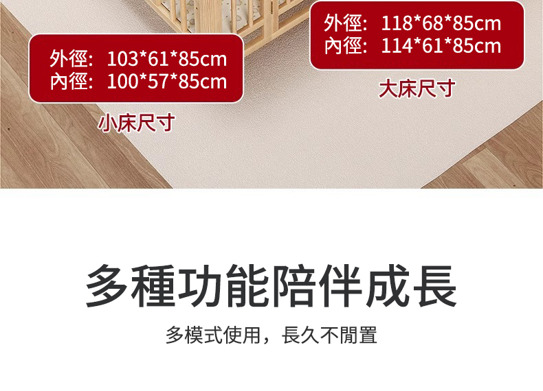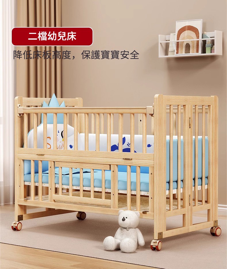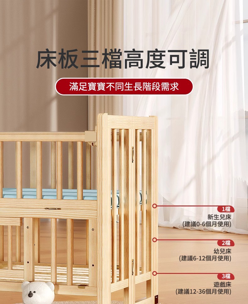 12分鐘前陪伴寶寶成長,永不閒置【嬰兒床-->遊戲床-->書桌】日本超火の可折疊嬰兒床,實木無漆更安心,可拼接大床+滑輪移動,多功能設計陪寶寶成長! - 【118*68*85cm】折疊大床+五件套+蚊帳
