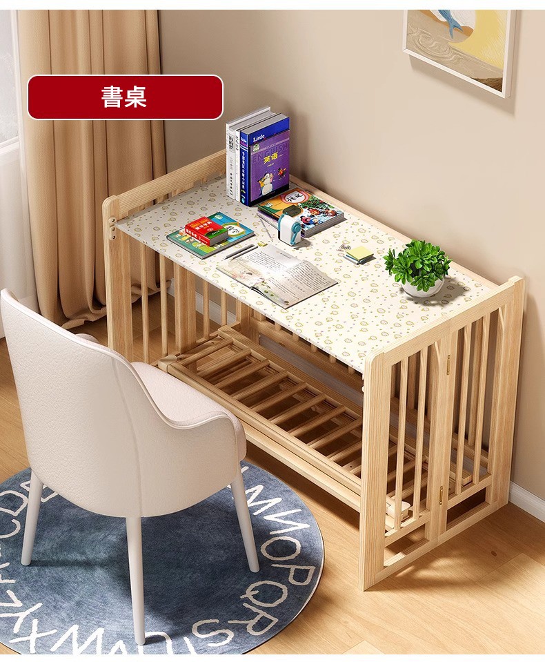 11分鐘前陪伴寶寶成長,永不閒置【嬰兒床-->遊戲床-->書桌】日本超火の可折疊嬰兒床,實木無漆更安心,可拼接大床+滑輪移動,多功能設計陪寶寶成長! - 【118*68*85cm】折疊大床+五件套+棕墊+蚊帳
