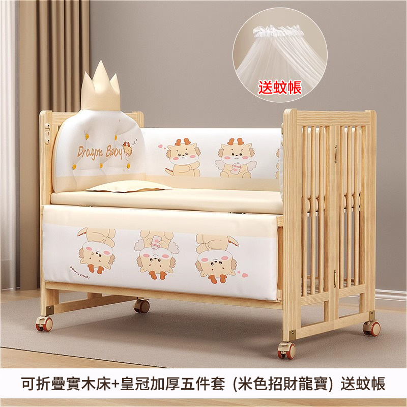 4分鐘前陪伴寶寶成長,永不閒置【嬰兒床-->遊戲床-->書桌】日本超火の可折疊嬰兒床,實木無漆更安心,可拼接大床+滑輪移動,多功能設計陪寶寶成長! - 【103*61*85cm】折疊小床+五件套+蚊帳