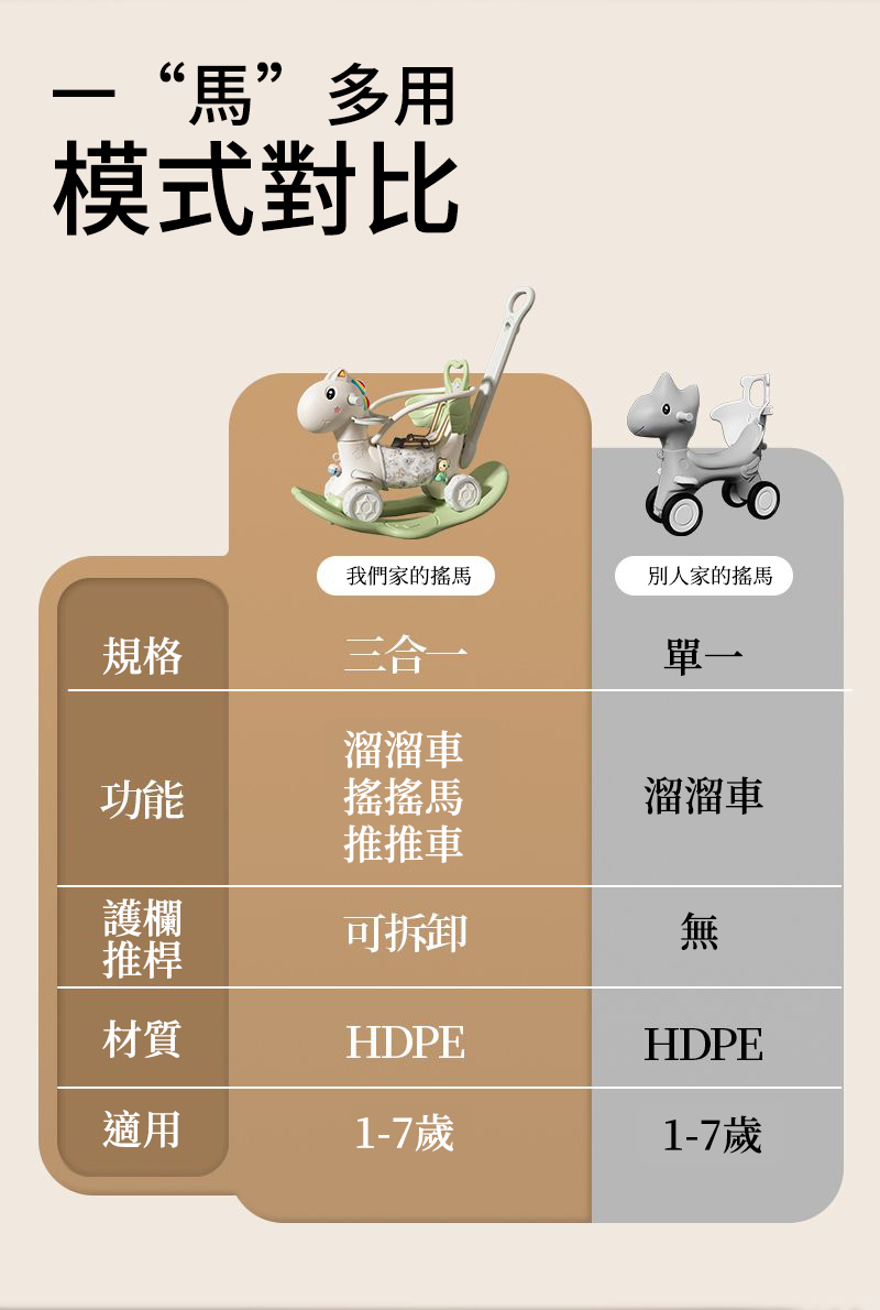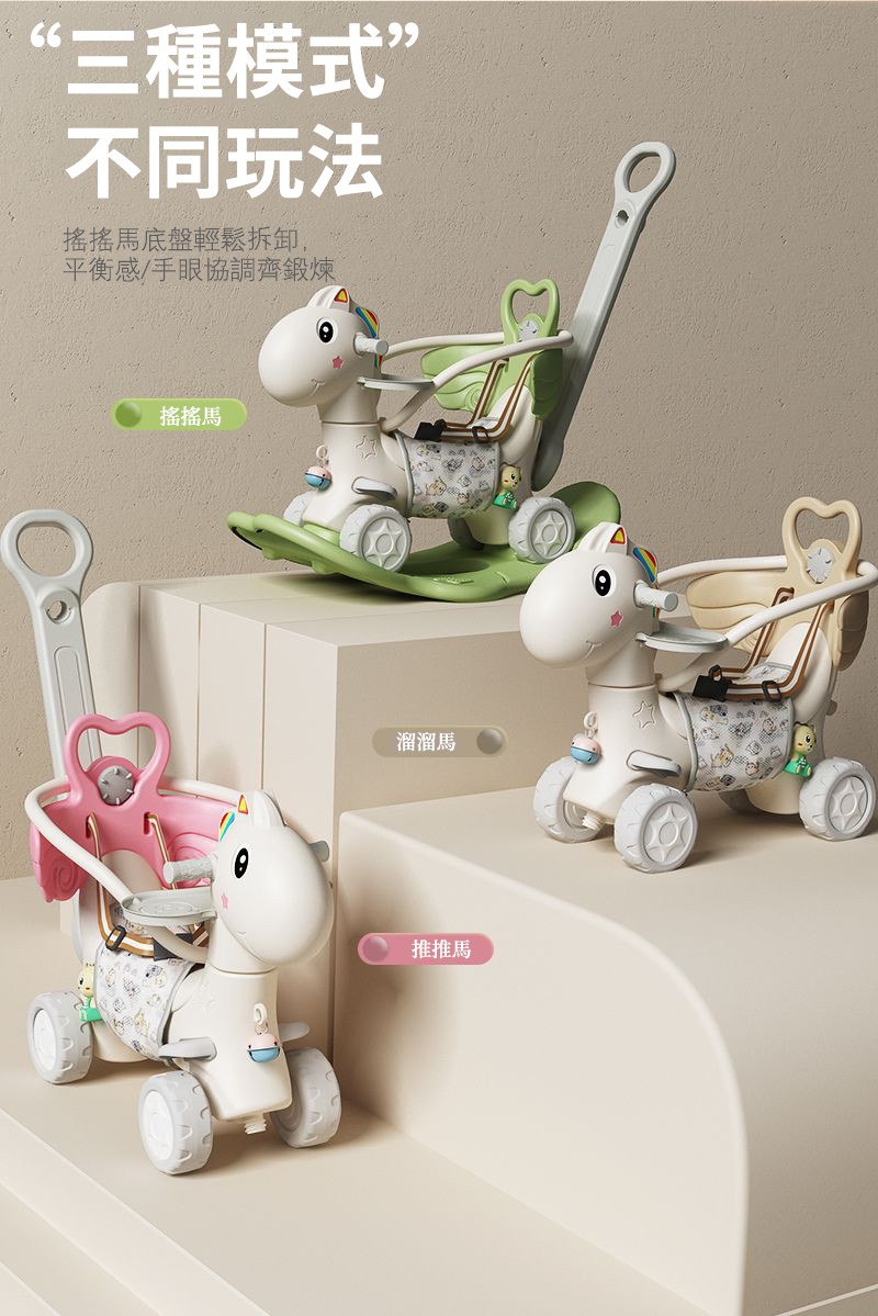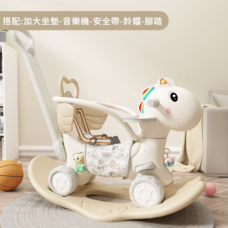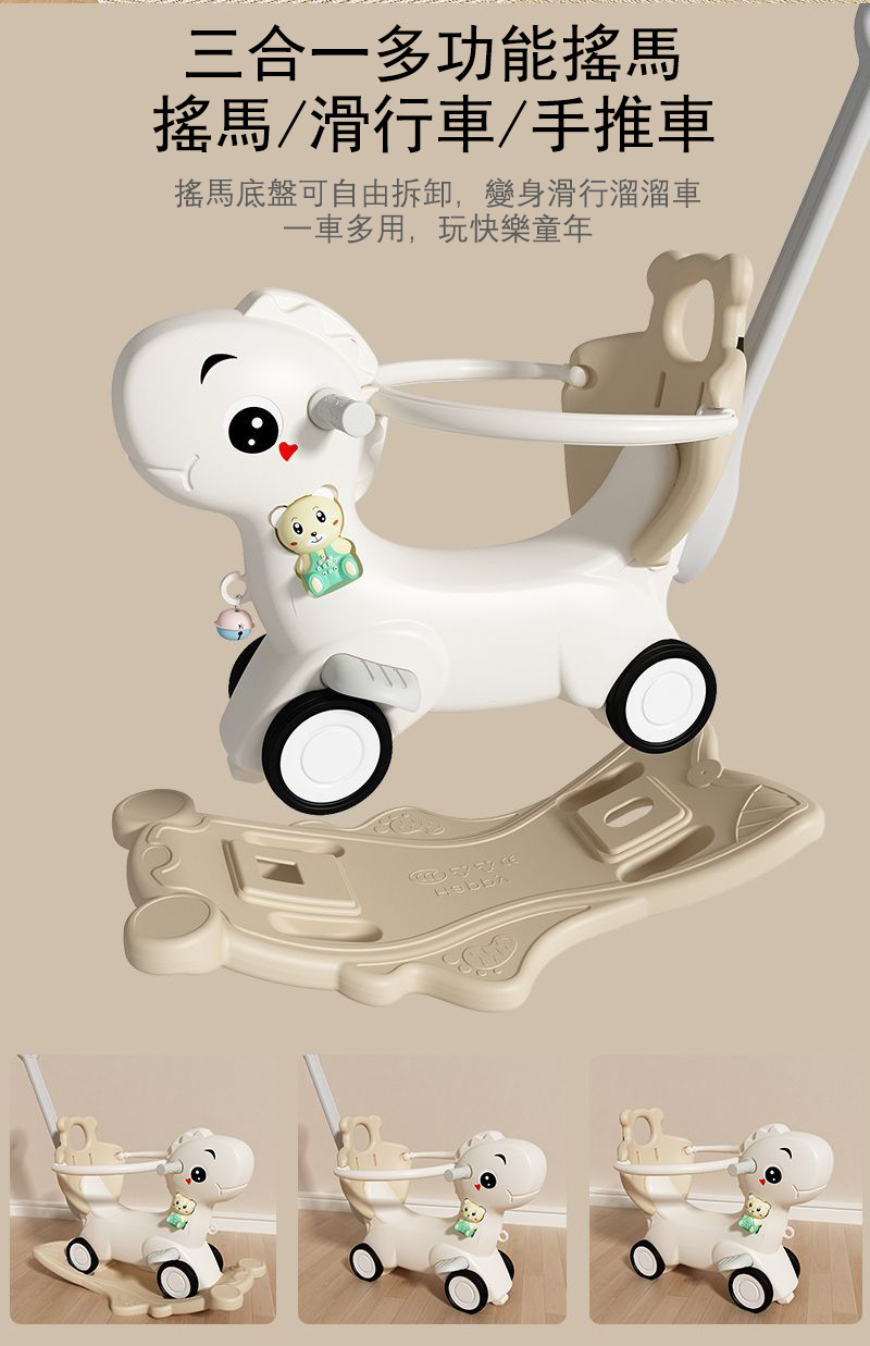 2分鐘前【大減價!大減價!】臺灣熱銷丨1-3週嵗生日禮物搖椅馬兩用搖搖車滑行車 兒童搖搖馬 - 普通輪(摩卡色)靠背+推桿護欄