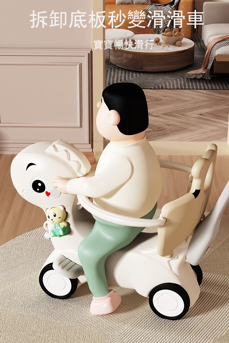25分鐘前【大減價!大減價!】臺灣熱銷丨1-3週嵗生日禮物搖椅馬兩用搖搖車滑行車 兒童搖搖馬 - 加寬輪(摩卡色)大坐墊+餐盤+靠背+推桿護欄
