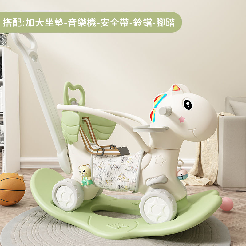 半小時前【大減價!大減價!】臺灣熱銷丨1-3週嵗生日禮物搖椅馬兩用搖搖車滑行車 兒童搖搖馬 - 普通輪(青椰綠)靠背+推桿護欄