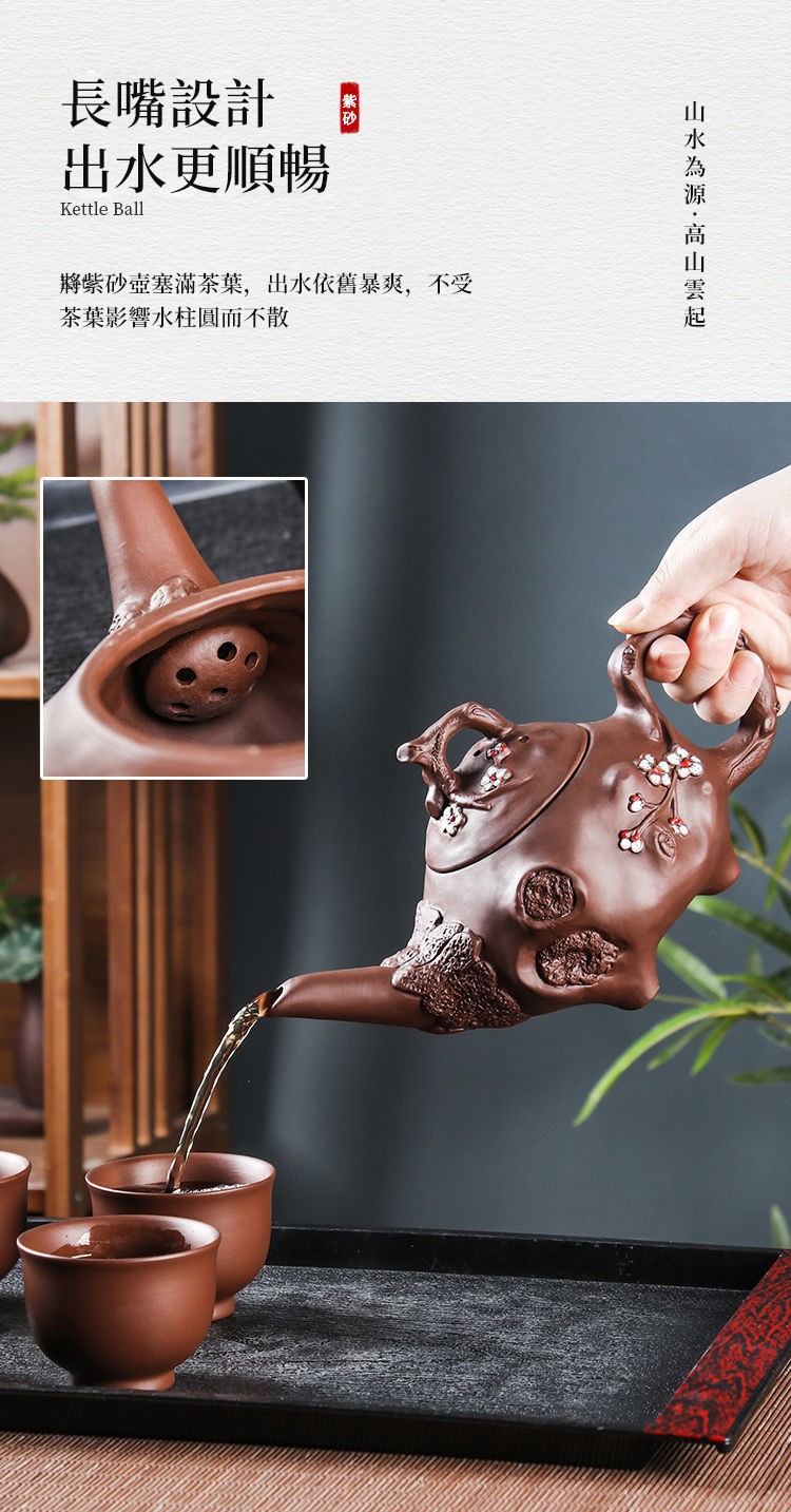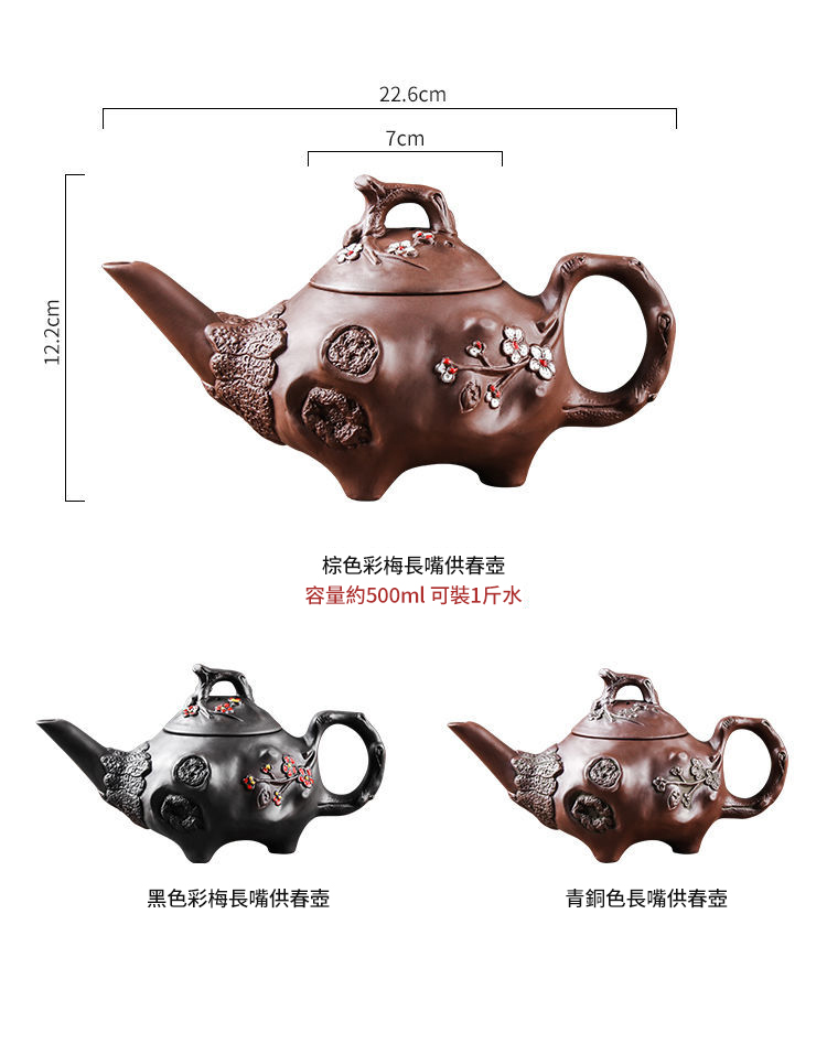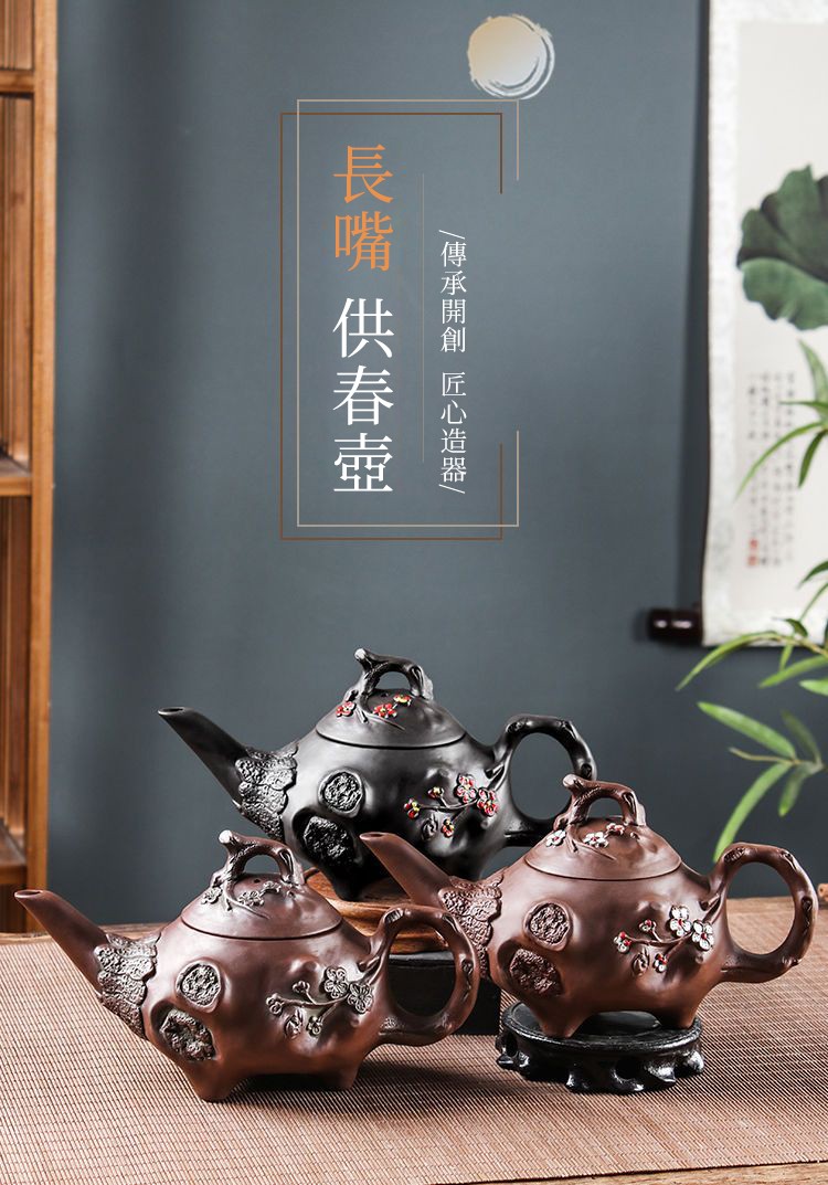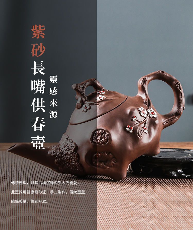 半小時前✩ 絕版收藏!正宗宜興紫砂朱泥長嘴供春壺 ❘ 黃金大容量500cc ❘ 純手工浮雕匠製,泡茶更香 - 紫砂朱泥長嘴供春壺500cc