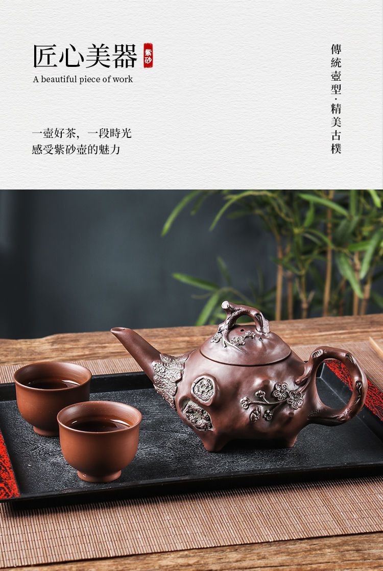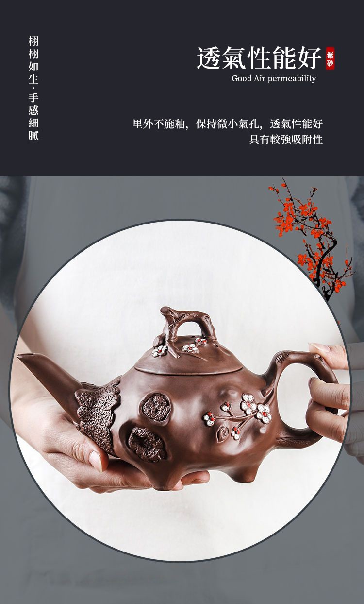 15分鐘前✩ 絕版收藏!正宗宜興紫砂朱泥長嘴供春壺 ❘ 黃金大容量500cc ❘ 純手工浮雕匠製,泡茶更香 - 紫砂朱泥長嘴供春壺500cc