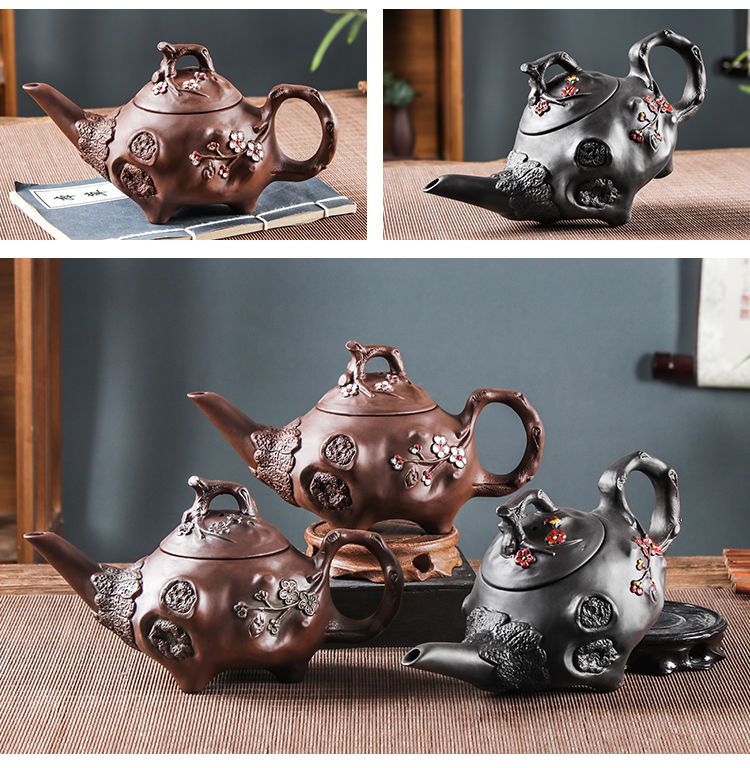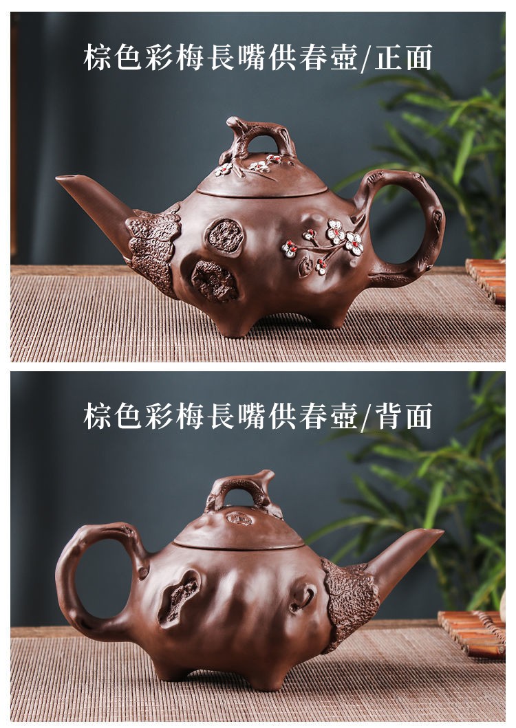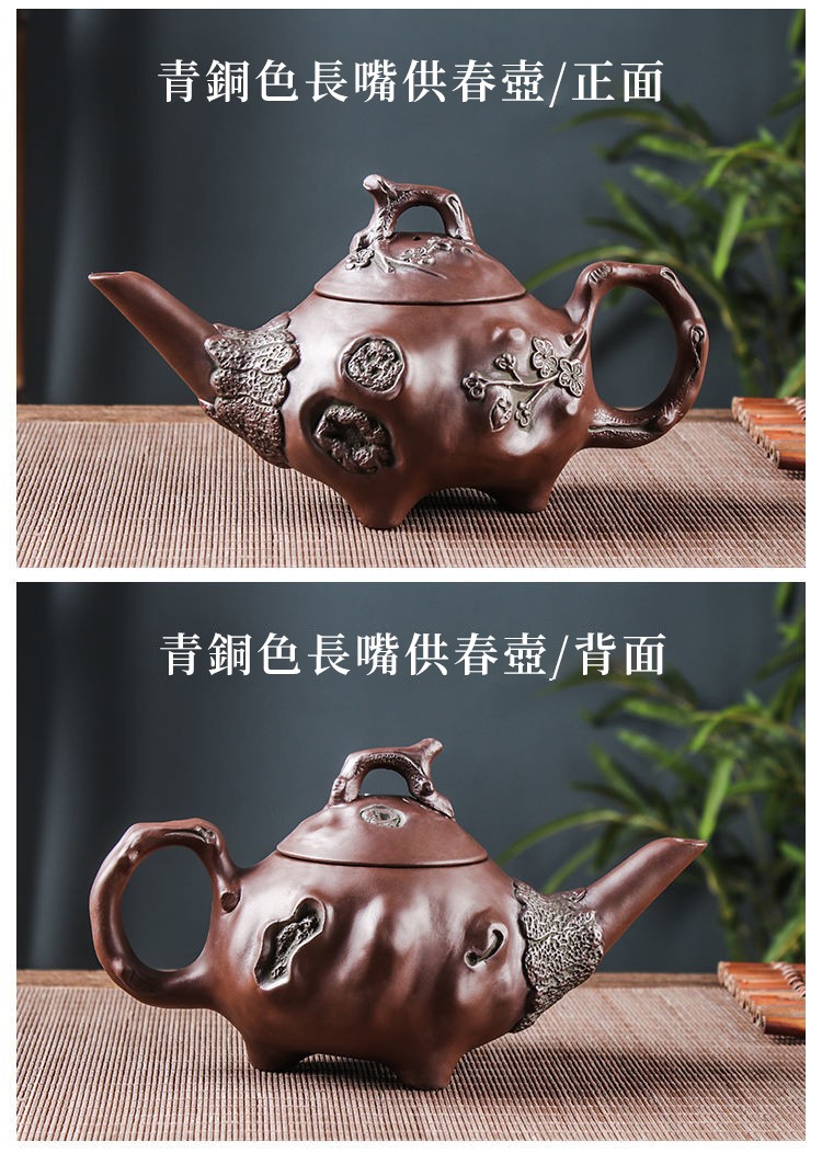 7分鐘前✩ 絕版收藏!正宗宜興紫砂朱泥長嘴供春壺 ❘ 黃金大容量500cc ❘ 純手工浮雕匠製,泡茶更香 - 紫砂朱泥長嘴供春壺500cc