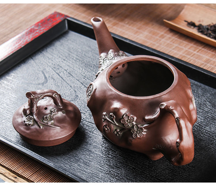 11分鐘前✩ 絕版收藏!正宗宜興紫砂朱泥長嘴供春壺 ❘ 黃金大容量500cc ❘ 純手工浮雕匠製,泡茶更香 - 紫砂朱泥長嘴供春壺500cc