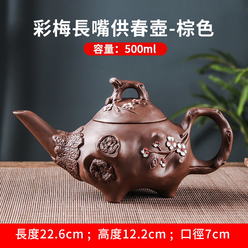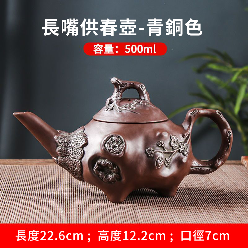 4分鐘前✩ 絕版收藏!正宗宜興紫砂朱泥長嘴供春壺 ❘ 黃金大容量500cc ❘ 純手工浮雕匠製,泡茶更香 - 紫砂朱泥長嘴供春壺500cc